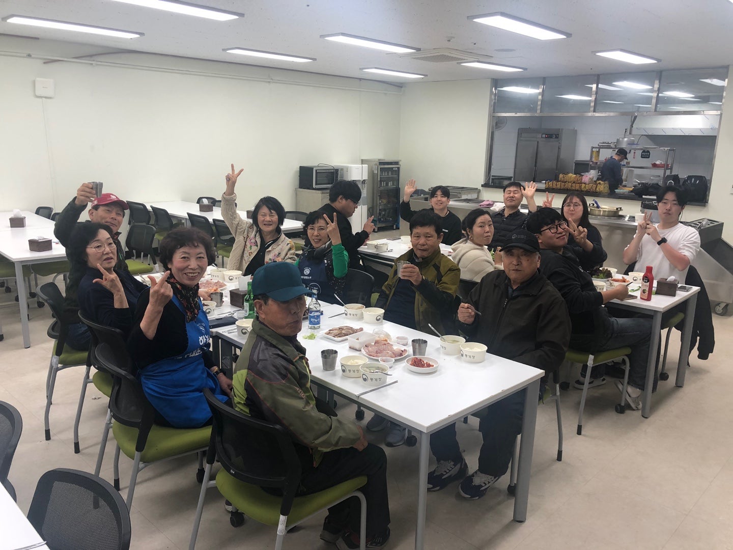 식사 준비 마치고 직원들 회원들 모여 맛있게 먹었습니다. 회원이 아니더라도 오셔서 드시라고 초대하셨습니다.