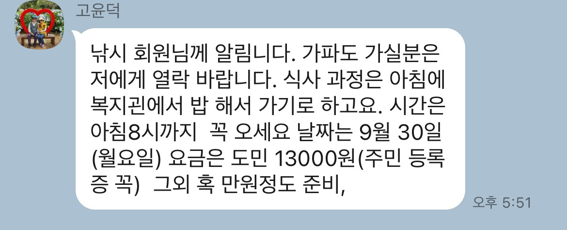 회원들에게 가파도 낚시 공지하시고 준비할 거 이야기해주셨습니다.