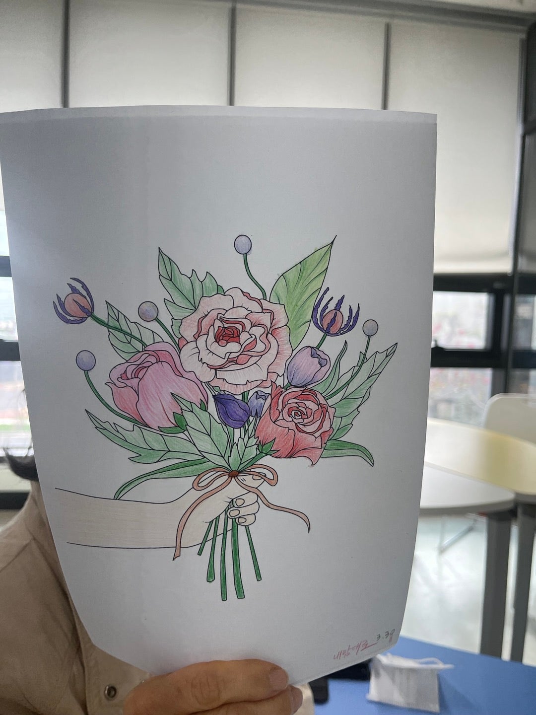 좋아하시는 그림이 있으시냐 물으니 꽃 도안을 좋아하신다고 하십니다. 다음 만남에는 꽃 도안을 좀 더 준비해야겠습니다.