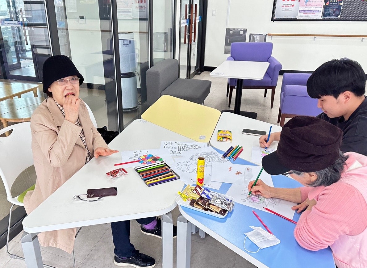 다들 웃으시며 동의하십니다. 자기가 좋아하는 색연필을 들고 컬러링을 시작하셨습니다. 반응이 좋아 뿌듯합니다.
