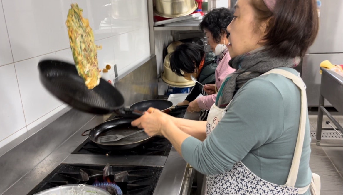 "불조절은 내가 잘하지, 제가 전을 한번 부쳐볼게요"