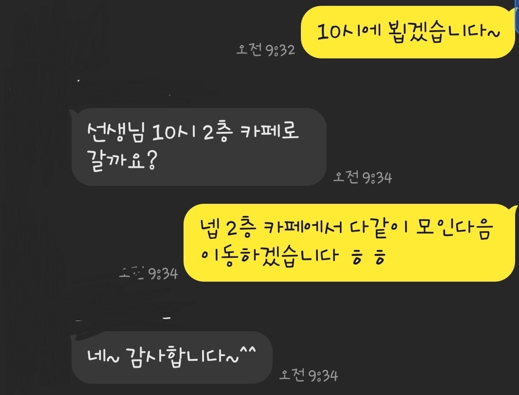 24일 당일 오전 10시에 복지관내에 위치한 카페에서 다같이 모이기로 하였습니다.