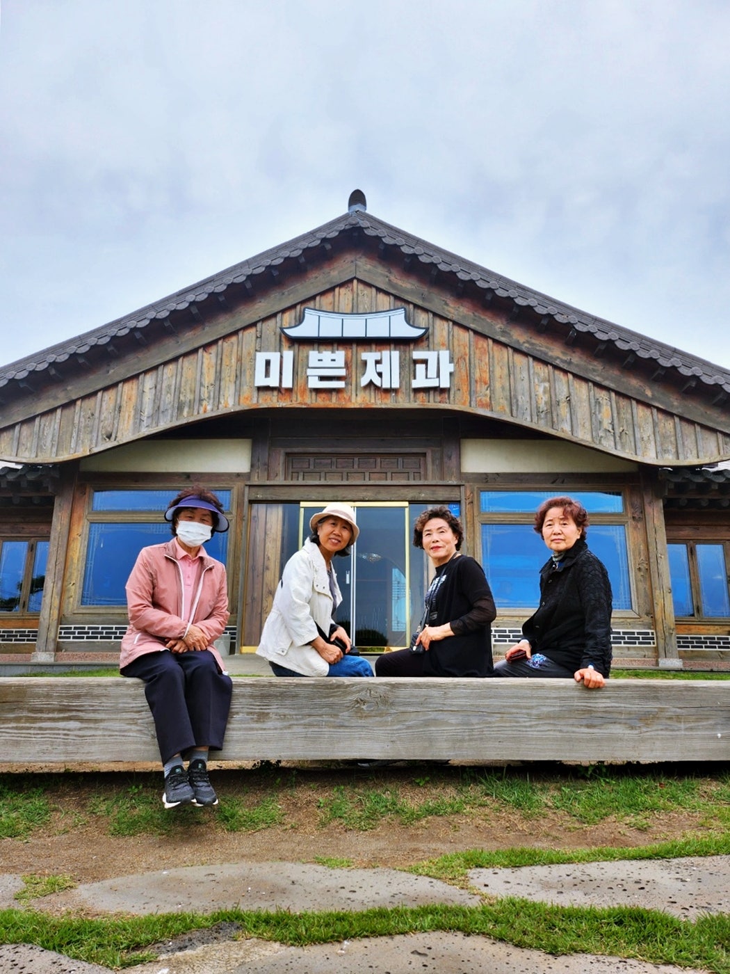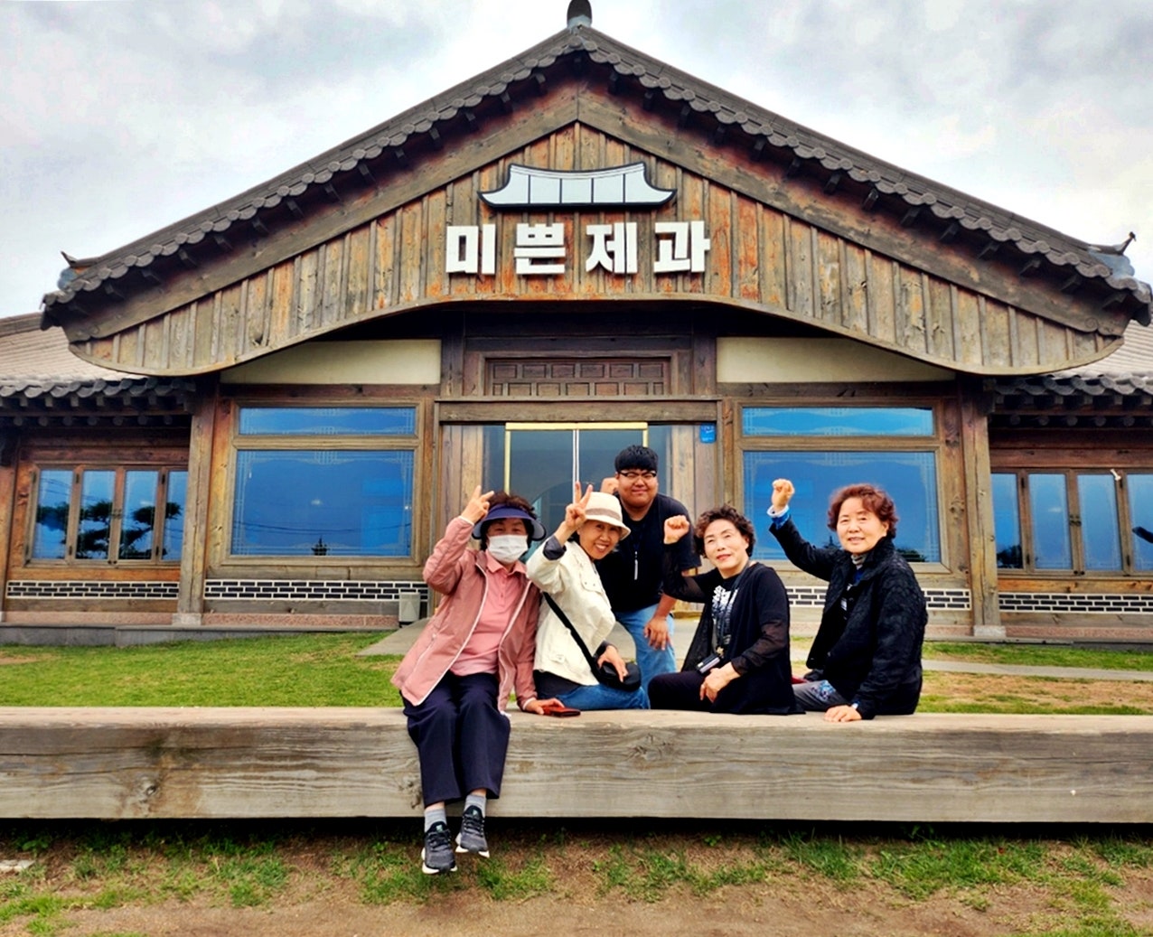 그래도 멀리까지 온것이 아까워 미쁜제과를 배경으로 단체사진을 찍었습니다.