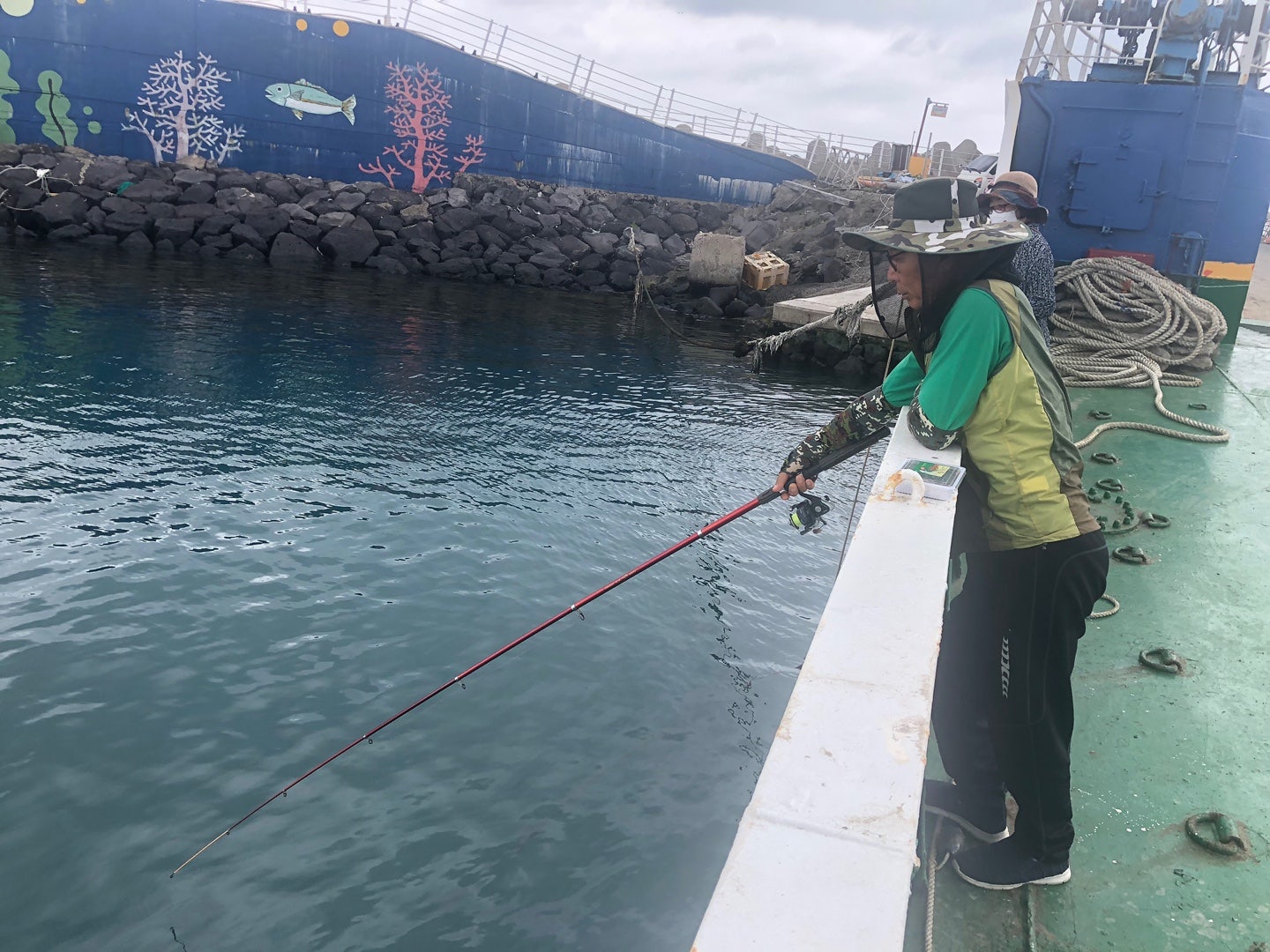 함께 잡은 물고기와 사진찍는 재미도 있었습니다. 포인트를 여러 곳 옮기다가 정박해 있는 배위에서 낚시했습니다.