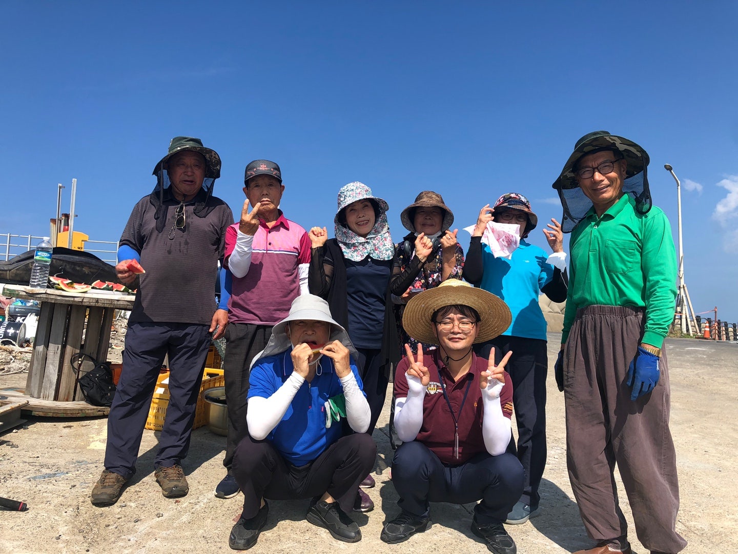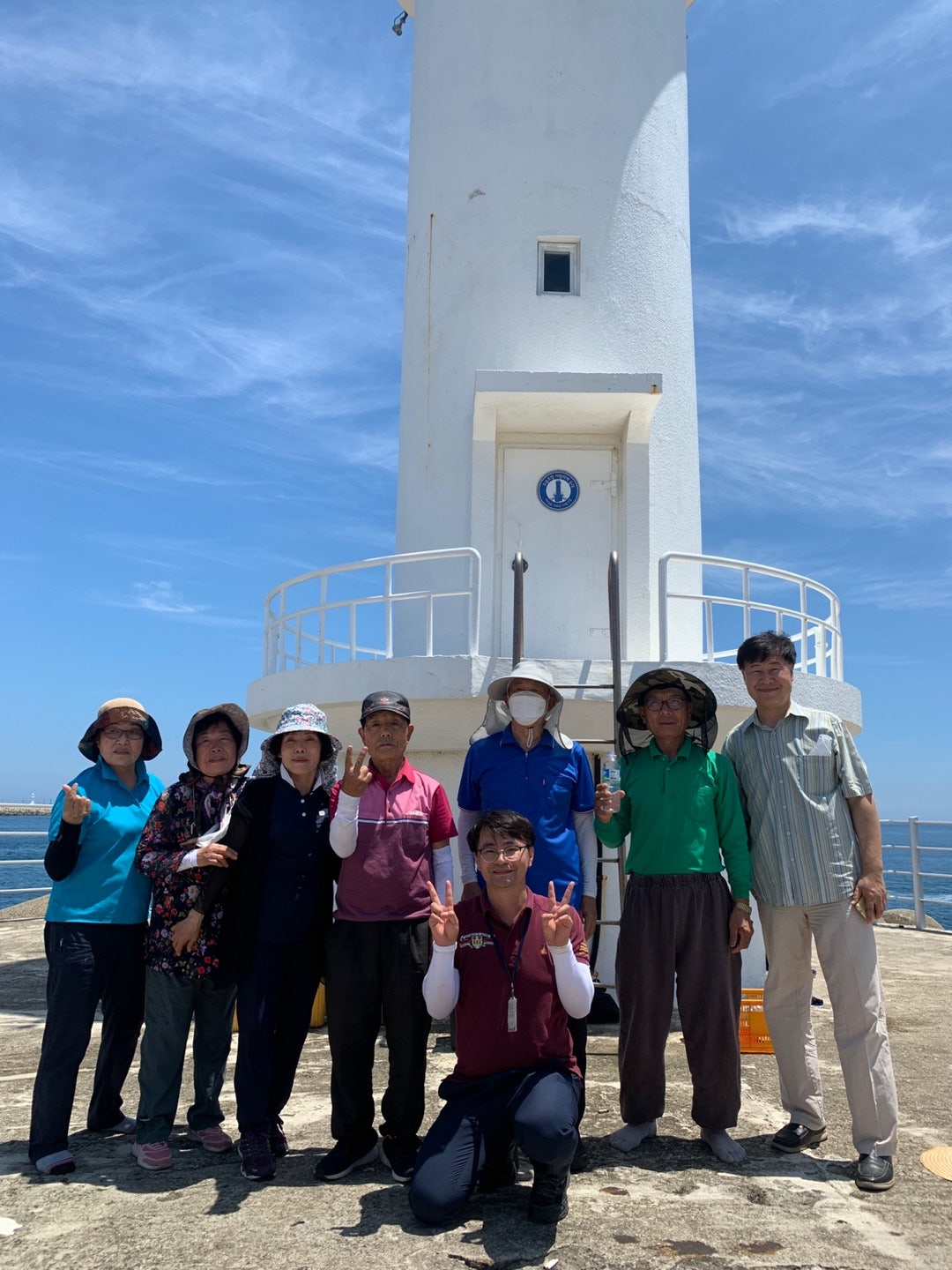 바닷가가 내려다 보이는 등대 그늘에 모여 음식준비했습니다.