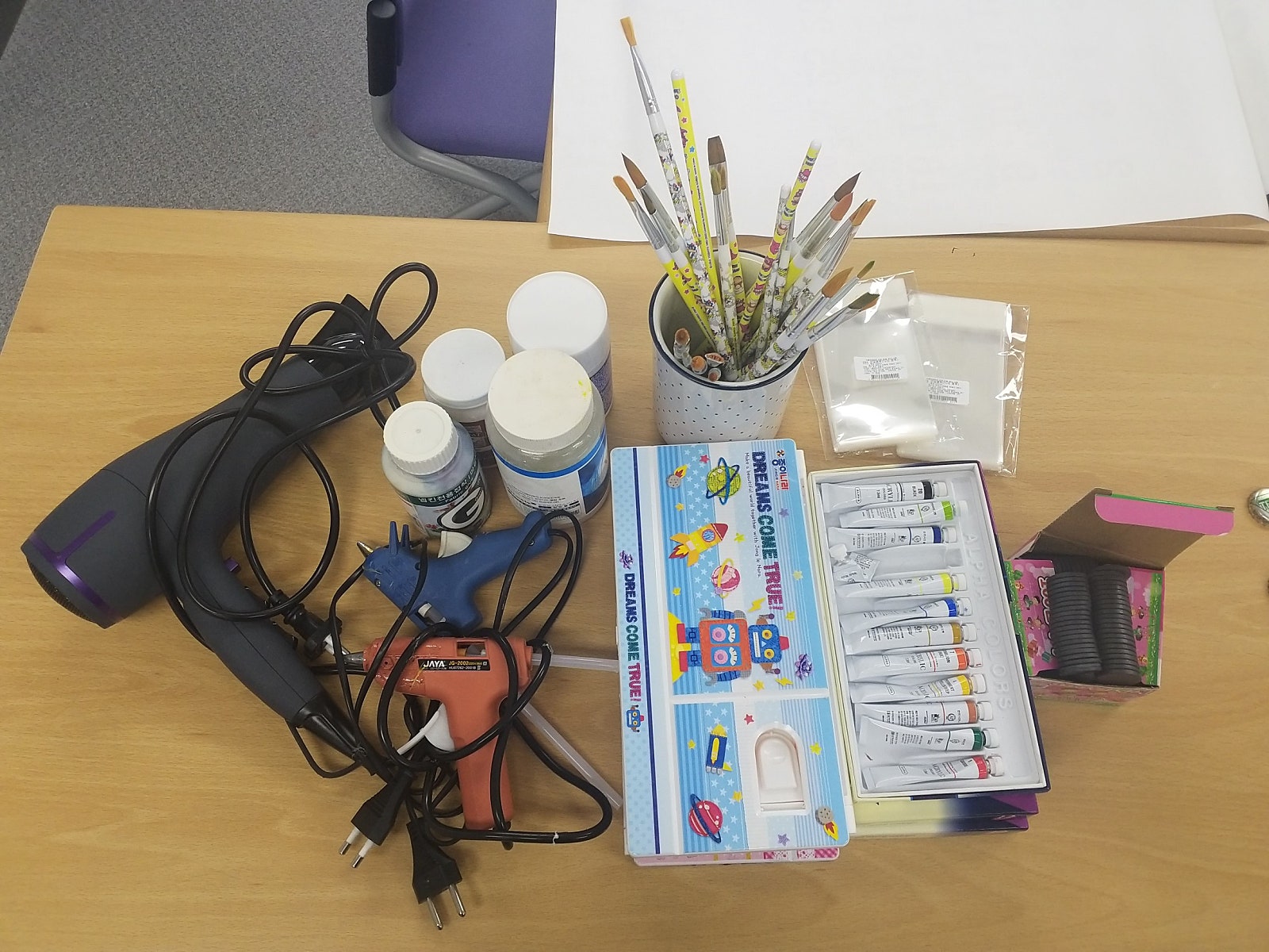준비물은 간단합니다. 병뚜껑, 원형자석, 젯소, 붓, 물감, 글루건, 스티커 등