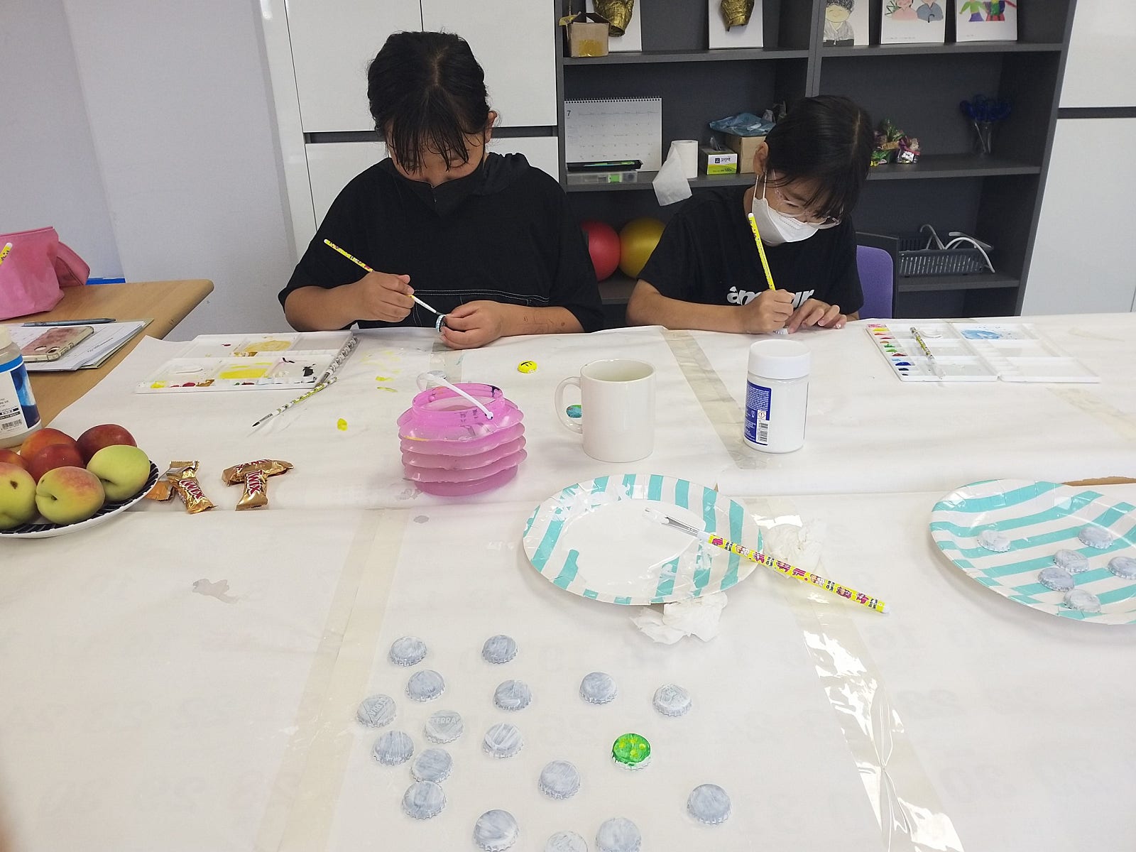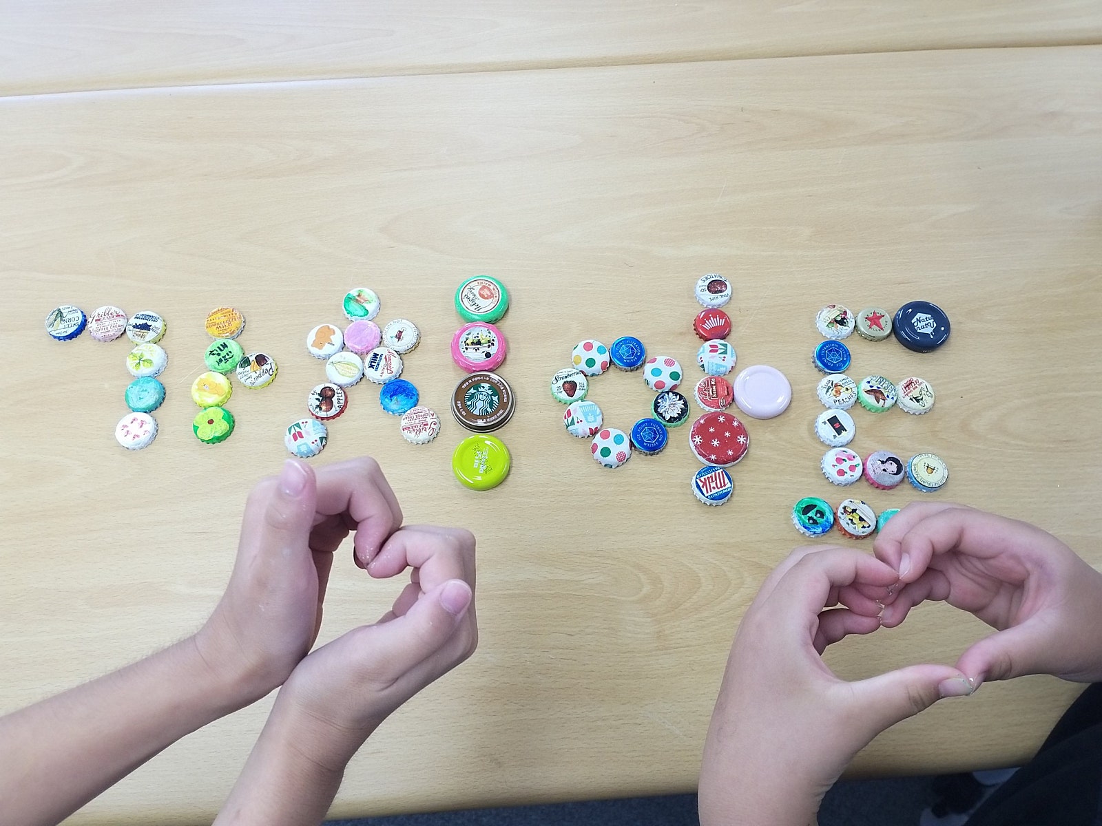 친구들에게 병뚜껑은 각자 준비하고 가지고 오라고 했더니 다양한 병뚜껑을 챙겨 와 주어 감동했습니다.