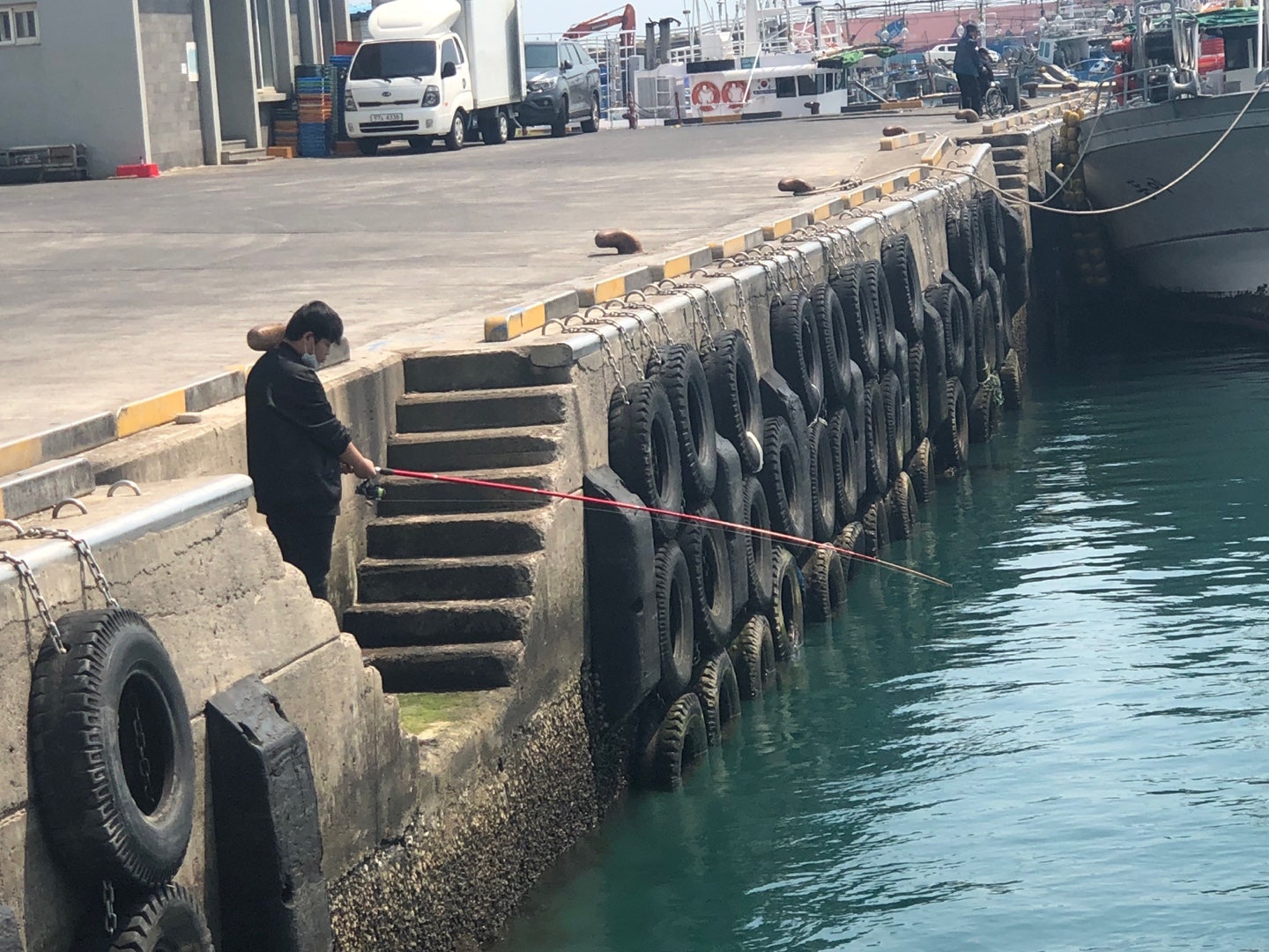 낚시점 들러 갯지렁이 구입했는데 한결이와 같은 아파트 사시는 사장님께서 얼굴 알아보고 비용을 받지 않으셨습니다. 사장님 고맙습니다. 미끼로 지렁이 끼는 거 한결이가 장갑끼고 왔다 갔다하며 모든 사람 미끼를 달아줬습니다.
