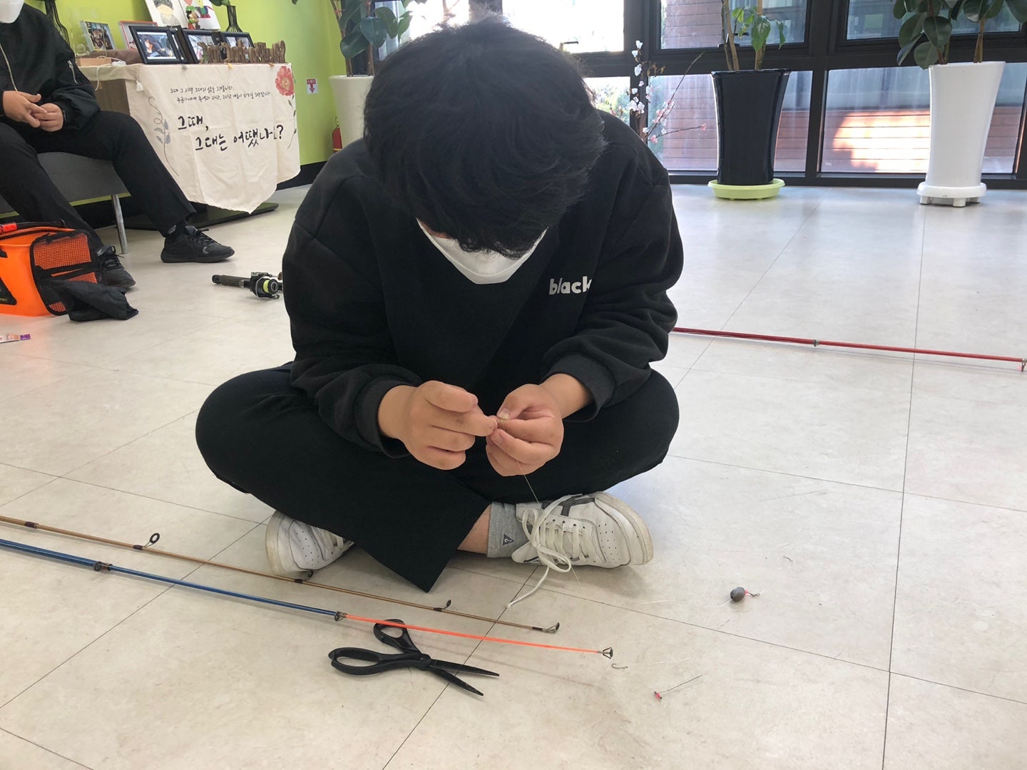 고등학교에 입학한 이경보, 이한결 학생이 제주의 자연과 문화를 홍보하는 청소년 동아리를 만들고 신청서를 냈습니다. 4월부터 매달 한 번씩 모여서 제주의 아름다운 환경을 자연 그대로 누리고 사진이나 영상으로 남겨서 타 지역 학생들과 교류활동이 있을 때 나누기로 했습니다. 4월에는 맛있는 식사와 낚시하기로 했습니다. 낚시에 가기 전에 미리 낚시대 살폈습니다 낚시대 펴서 고장난 곳 있는지 보고 낚시 줄과 낚시 바늘 바꿨습니다. 몇 년 전부터 함께 낚시하고 있어서 이제 제법 살 살핍니다. 낚시대 정비마치고 함께 장보러 갑니다.
