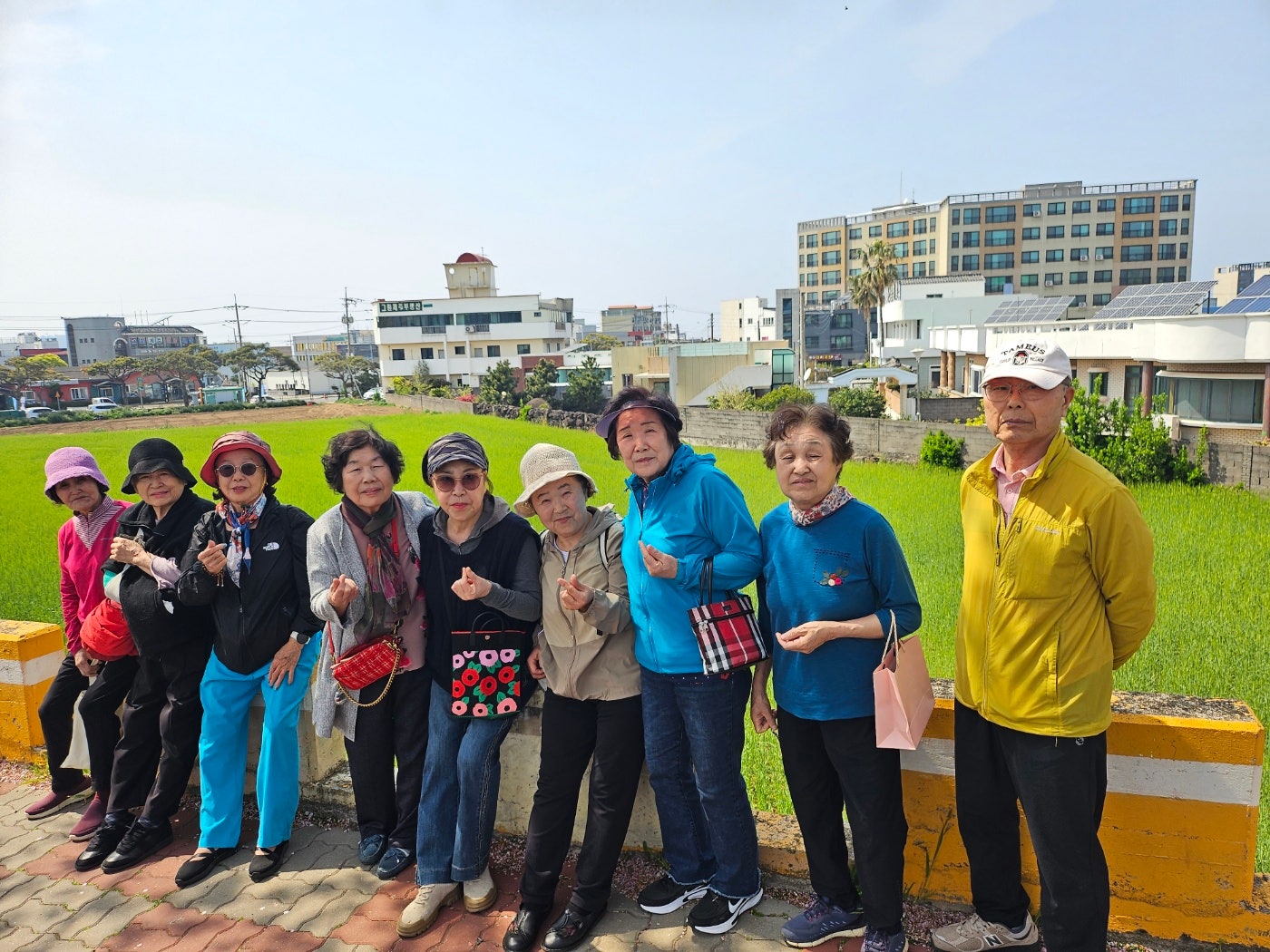 어머님이 정성껏 준비해 오신 간식 덕분에, 다들 과자 하나씩 입에 물고 출발부터 웃음꽃이 피었습니다. 날씨도 맑고 포근해서 “오늘 정말 나들이 가는 기분이네~” 하며 즐거워하셨고, 5월 10일에 제주도에 트로트 가수가 온다는 이야기로 같이 가자는 대화들이 오갔습니다.