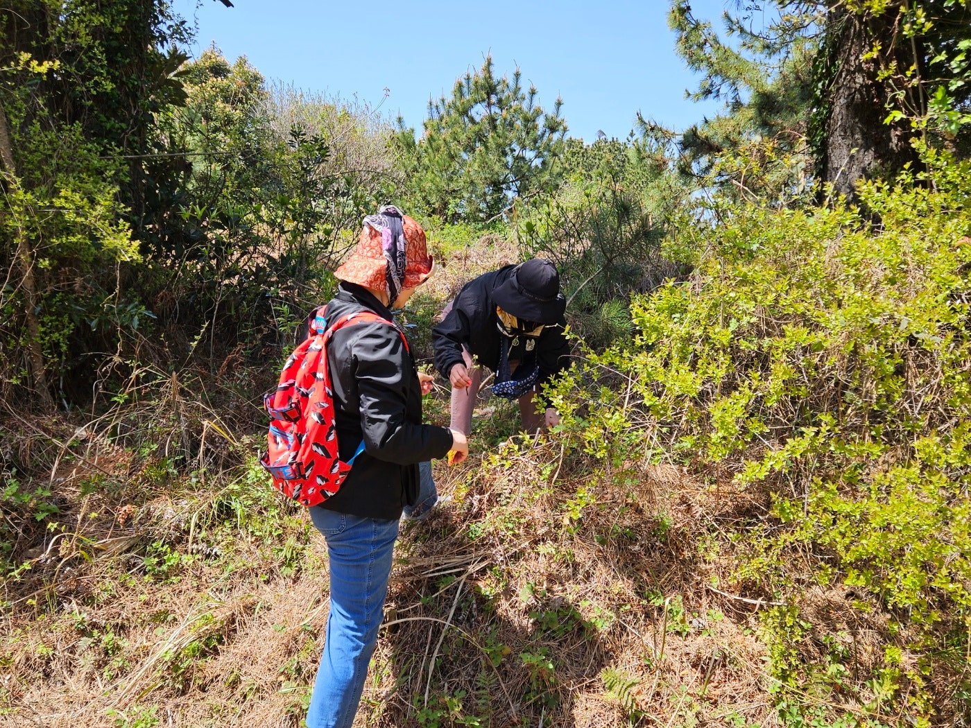 첫 모임 때는 쑥을 채집하셨었는데 오늘은 즐겁게 이야기하시면서 고사리를 뜯으셨습니다.