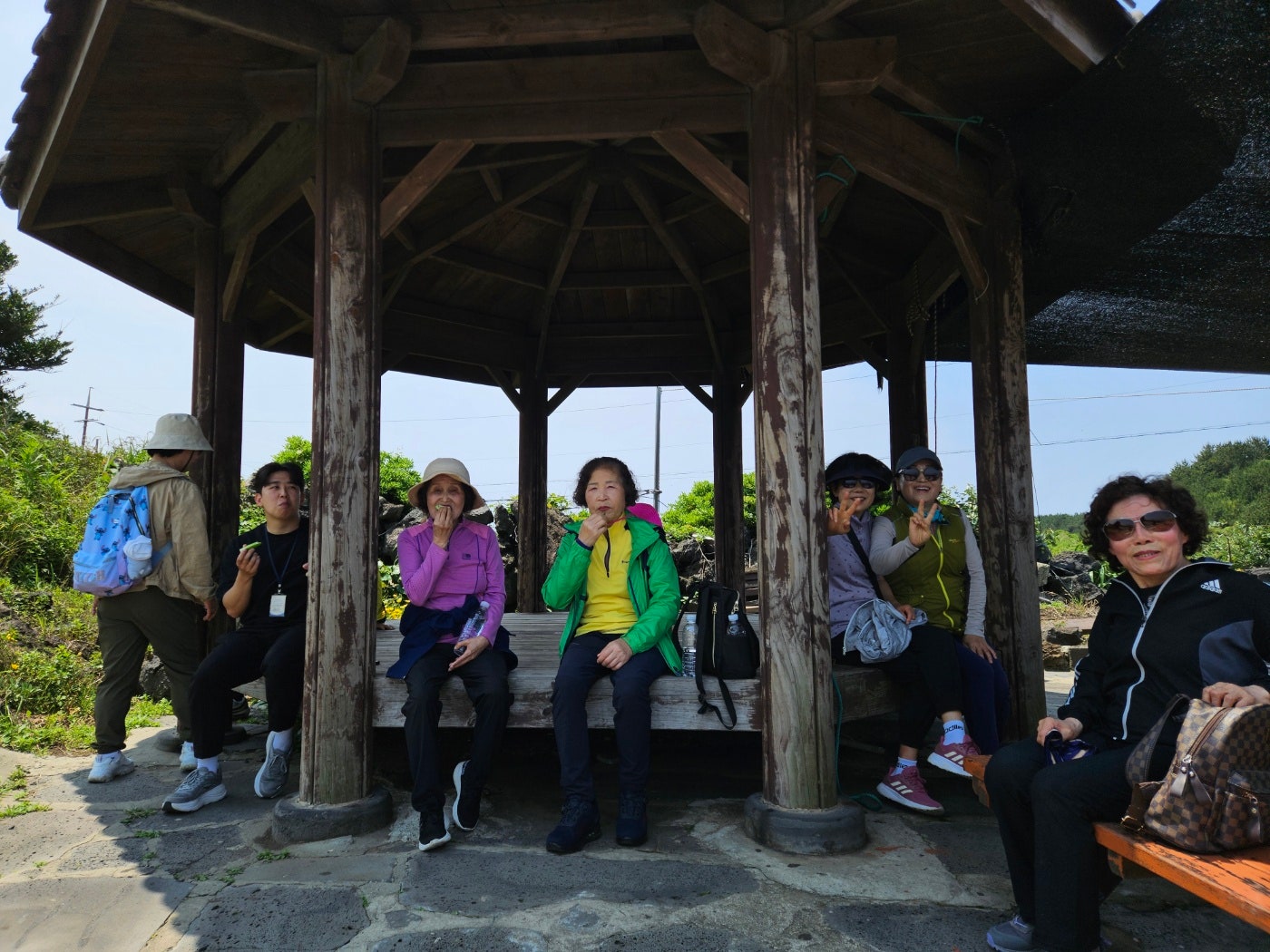 그렇게 이야기를 나누며 둘레길을 돌다 보니 경사가 완만한 경로로 간 B조 어르신들이 쉼터에 앉아계셨습니다.